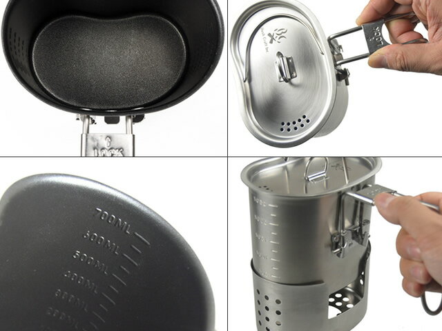 カップ麺の湯沸かし程度ならフタを外さずにそのまま注げばごみも入りません!アルコールストーブや固形燃料はもちろん、小さなたき火でもOKなゴトク(ストーブ)付き。