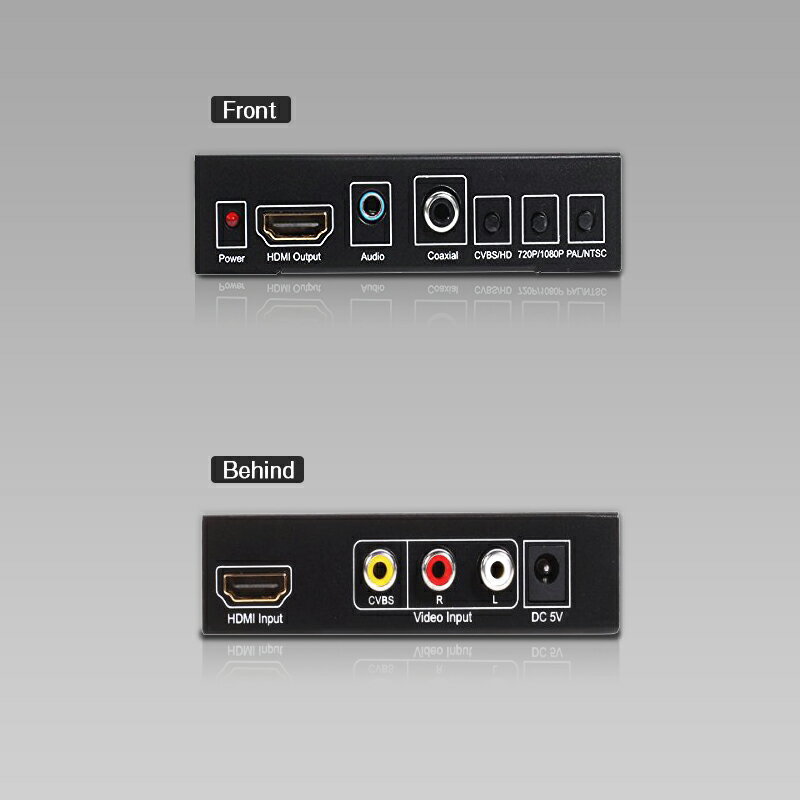 ◆ HDMIの映像出力は「フルHD 1080P」に対応(1080Pと720Pの切換え可能) スペック 入力端子:RCA端子(コンポジット)またはHDMI端子 映像出力端子:HDMI端子 音声出力端子:映像と同じHDMI端子から出力または同軸ケーブル、3.5mmステレオミニ(アナログ) 消費電力:5W(最大)